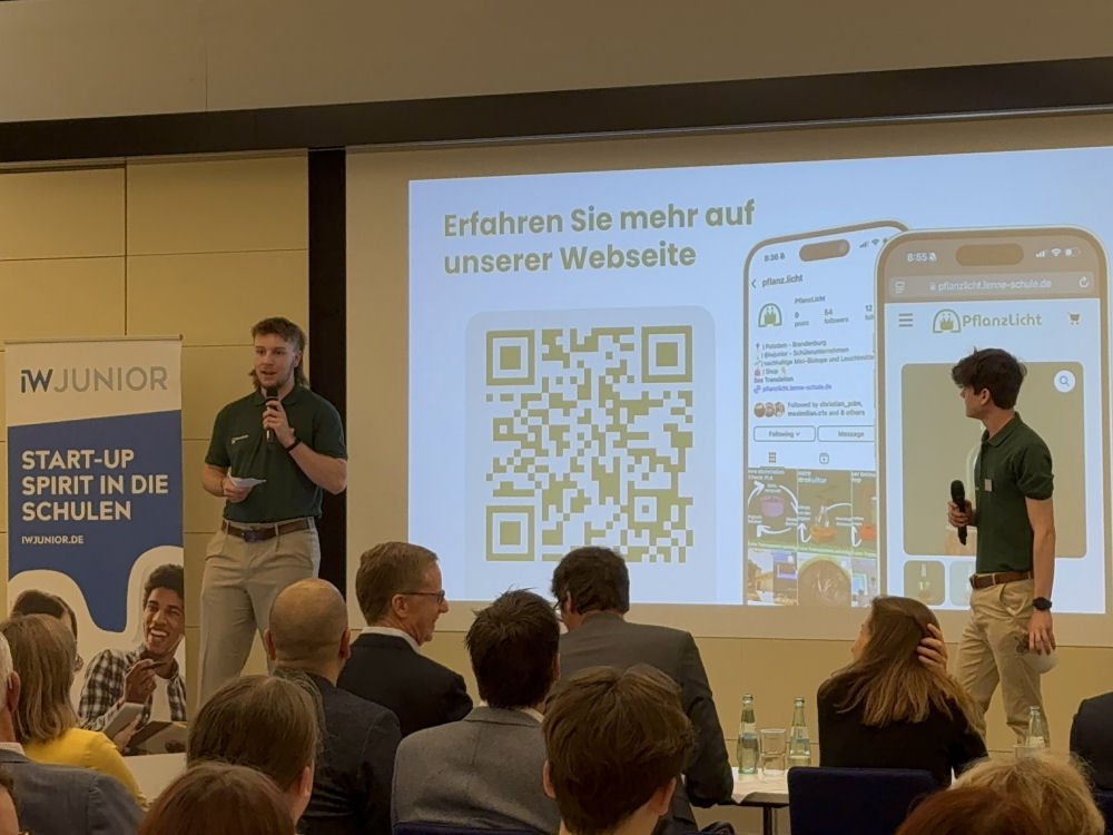 Köln/Potsdam, 5. Juni 2025 – Die Schülerfirma PflanzLicht der Peter Joseph Lenné Gesamtschule aus Potsdam ist als beste Schülerfirma Deutschlands im Rahmen des IW Junior Bundeswettbewerbs 2025 ausgezeichnet worden. Unser Team setzte sich gegen 13 konkurrierende Schülerfirmen durch, die zuvor die Landeswettbewerbe in ihren jeweiligen Bundesländern gewonnen hatten.